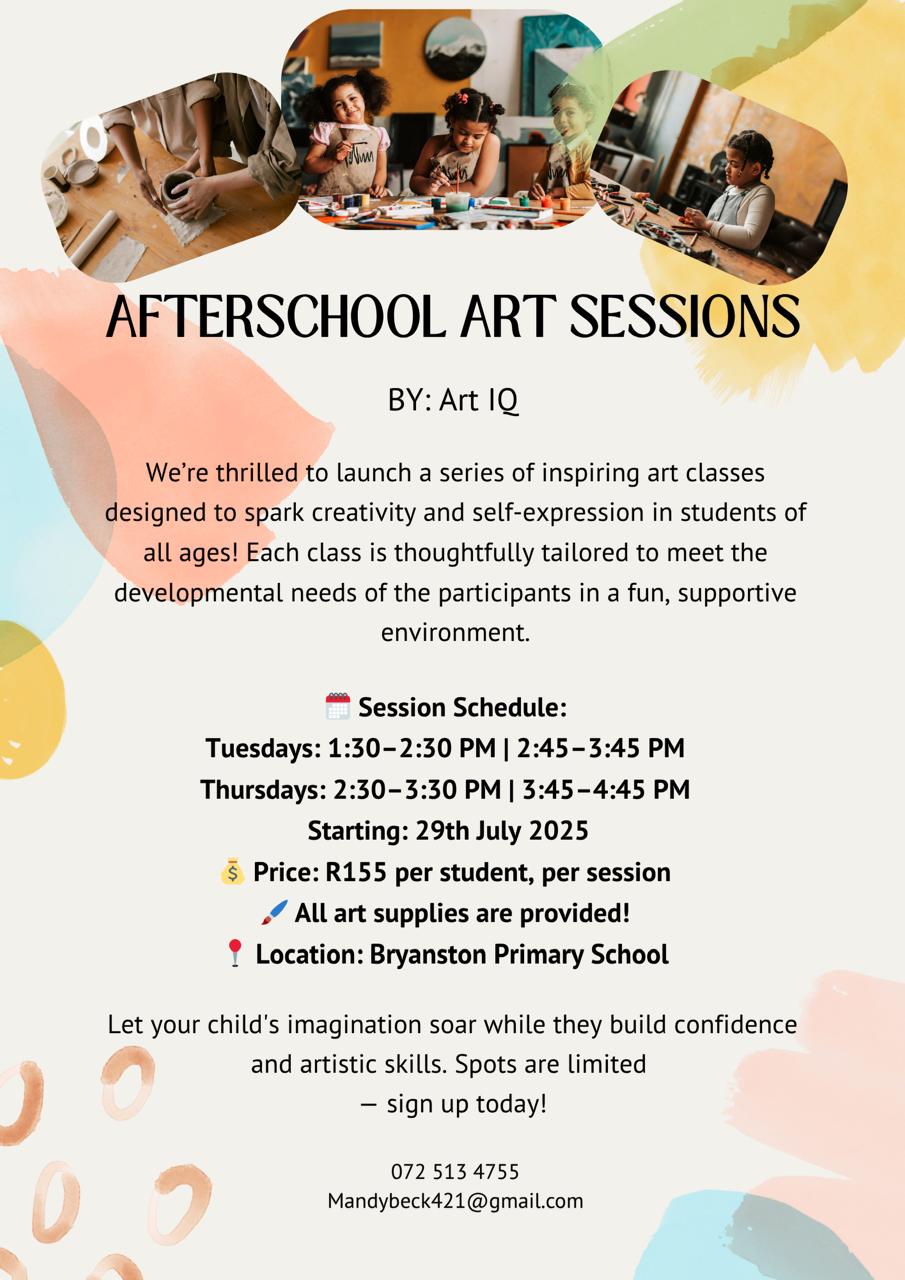 If any changes, please e-mail Mrs van Eeden on jvaneeden@bryanstonprimary.co.za